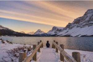 One of the largest lakes along the Icefields Parkway, Bow Lake sits at the base of the Crowfoot Glacier. Its vast, crystal-clear waters reflect the massive sheer cliffs of Bow Peak and the historic Num-Ti-Jah Lodge.