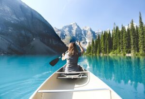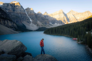 Tucked away in the Valley of the Ten Peaks, Moraine Lake is famous for its vivid, almost surreal shade of blue. A short walk up the “Rockpile” trail reveals the “Twenty Dollar View”—the same landscape once featured on the back of the Canadian $20 bill.
