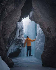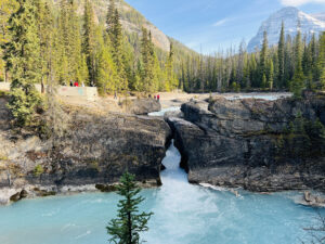Witness the raw power of nature where the Kicking Horse River has carved a solid rock path through a limestone barrier. This impressive “bridge” is a testament to the erosive force of the rushing turquoise water over thousands of years.