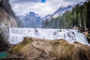Experience the sheer power of the Kicking Horse River as it plunges 30 meters over a massive, 150-meter wide ledge. This hidden gem requires a pleasant 4km round-trip hike through a lush forest, rewarding you with a thunderous roar and a refreshing mountain mist that makes it one of the most invigorating stops in the park.